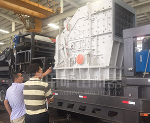 輪胎式反擊破移動站與普通破碎機相比較具有移動方便,占地面積小,可直接選定場地,放置到現場便可以投入生產,還有一項重要的特點就是普通的破碎機在原料到達破碎機破碎腔中,給料機和破碎機之間都要通過放置在礦面上的皮帶輸送機進行傳輸,而移動破碎機所屬的破碎站中破碎機生給料機是緊相臨了,中間交不需要輸送機的傳輸,礦面的原料由電鏟直接輸送到破碎機的進料口中,原料就會以固定的速度注入到破碎機中,這樣不僅減少了不必要的工序也速度以及成本上也大大降低了不必要的麻煩,破碎站中的各個 破碎設備就這樣一直來回的工作,直到全部原料被破碎完成。