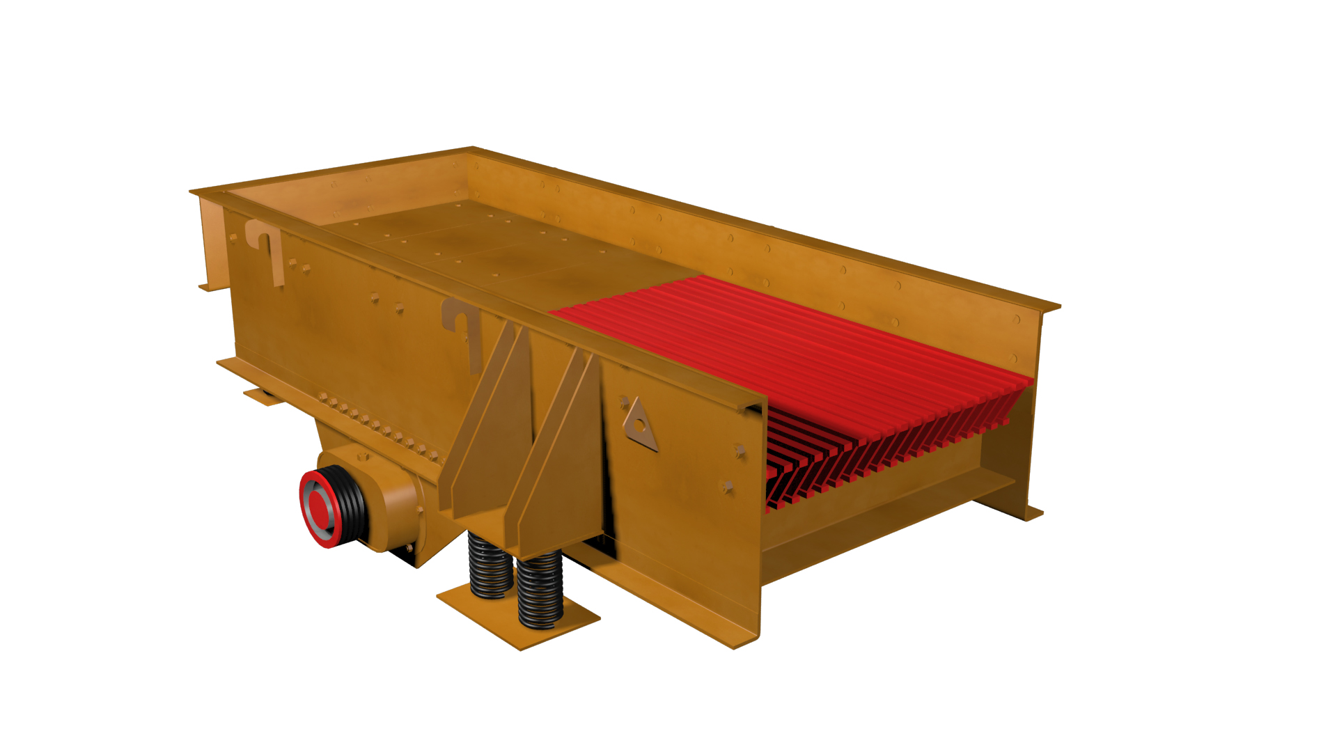 振動給料機又稱振動喂料機,在生產流程中可把塊狀、顆粒狀物料從貯料倉中均勻、定時、連續地給到受料裝置中去,并對物料進行粗篩分。普遍用于冶金、煤礦、選礦、建材、化工、磨料等行業的破碎、篩分聯合設備中。
