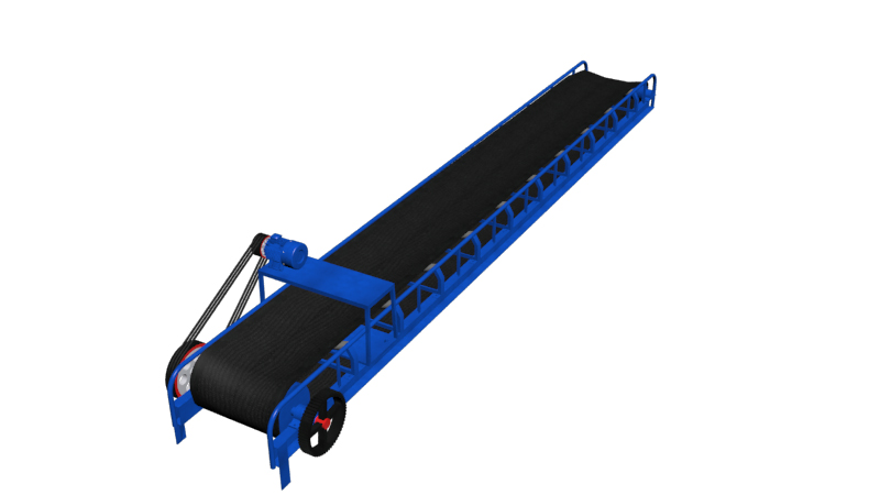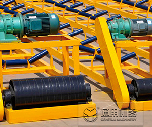 根據輸送工藝要求,可以單臺輸送,也可多臺膠帶輸送機組成或與其他輸送設備組成水平或傾斜的輸送系統,以滿足不同布置形式的作業線需要。膠帶傳送機可在環境溫度-20℃至+40℃范圍內使用,輸送物料的溫度在50℃以下。工作時輸送帶繞經傳動滾筒和拉緊滾筒形成無極環形帶,上下輸送帶由托輥支撐以限制輸送帶的撓曲垂度,拉緊裝置為輸送帶正常運行提供所需的張力。驅動裝置驅動傳動滾筒,通過傳動滾筒和輸送帶之間的摩擦力驅動輸送帶運行,物料裝在輸送帶上和輸送帶一起運動。