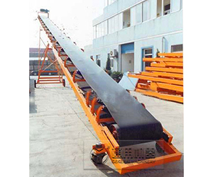 膠帶傳送機主要由機架、輸送皮帶、皮帶輥筒、張緊裝置、傳動裝置等組成。機身采用優質鋼板連接而成 ,由前后支腿的高低差形成機架,平面呈一定角度傾斜。機架上裝有皮帶輥筒、托輥等,用于帶動和支承輸送皮帶。有減速電機驅動和電動滾筒驅動兩種方式。