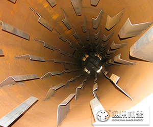 采用多組合式揚料裝置設計生產的烘干機在揚料裝置系統上作了多方面的技術革新,克服了傳統烘干機的“風洞”現象,熱效率高,物料損耗降低20%左右。