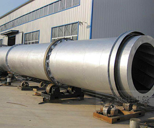 轉筒烘干機主要由回轉體、揚料板、傳動裝置、支撐裝置及密封圈等部件組成。工作時物料由皮帶輸送機或斗式提升機送到料斗,經加料機通過加料管道(斜度大于物料的自然傾角)進入加料端。物料從較高一端加入,載熱體由低端進入,與物料成逆流接觸。隨著圓筒的轉動,物料受重力作用運行到較底的一端,在筒體內向前移動,直接或間接得到了載熱體的給熱,得以干燥,然后在出料端經輸送機送出。